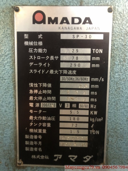 Máy đột thủy lực Amada SP-30, Nhật Bản